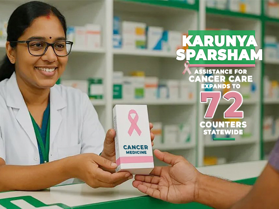 കാൻസർ രോഗികൾക്കും കുടുംബങ്ങൾക്കും വലിയ സാമ്പത്തിക സഹായം ഉറപ്പാക്കുന്ന സംസ്ഥാന ആരോഗ്യ വകുപ്പിന്റെ 'കാരുണ്യ സ്പർശം - സീറോ പ്രോഫിറ്റ് ആന്റി കാൻസർ ഡ്രഗ്സ്' പദ്ധതി വിപുലീകരിച്ചു. ഇതോടെ, സംസ്ഥാനത്തുടനീളം ആകെ 72 കാരുണ്യ സ്പർശം കൗണ്ടറുകൾ പ്രവർത്തനക്ഷമമായി.
